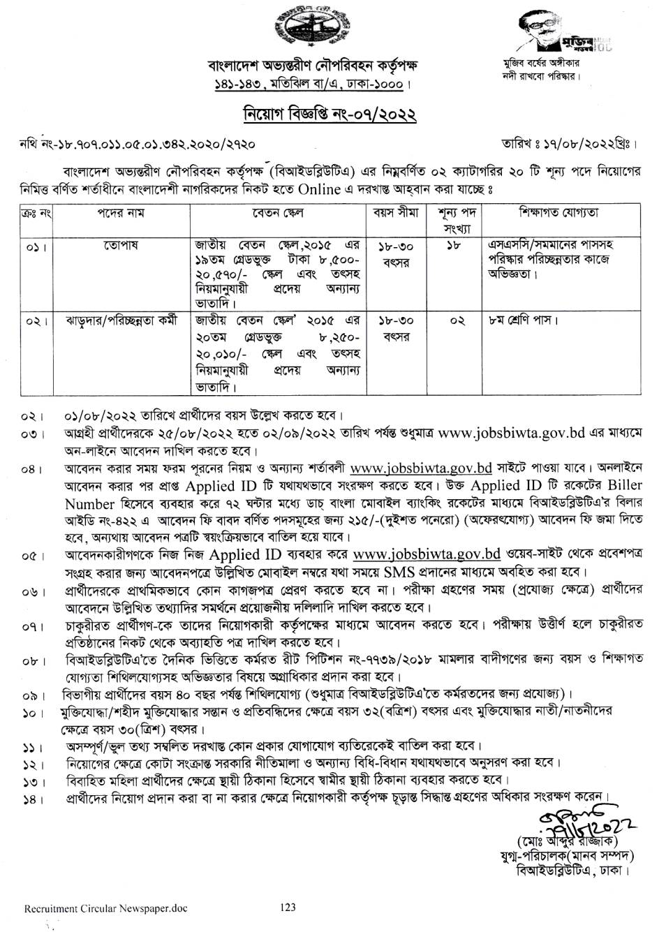 বাংলাদেশ অভ্যন্তরীণ নৌ-পরিবহন কর্তৃপক্ষ চাকরি নিয়োগের অফিসিয়াল বিজ্ঞপ্তি – (BIWTA Govt Job Circular 2022 All Images)