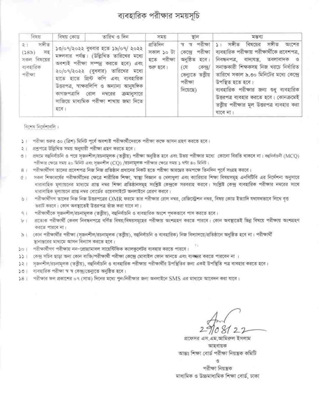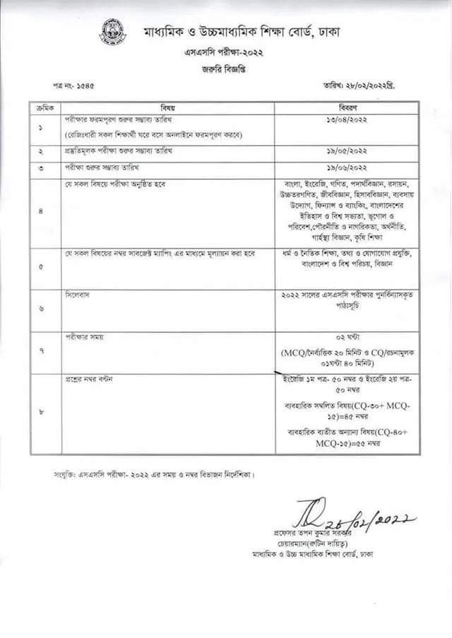 ২০২২ সালের এসএসসি পরীক্ষার রুটিন